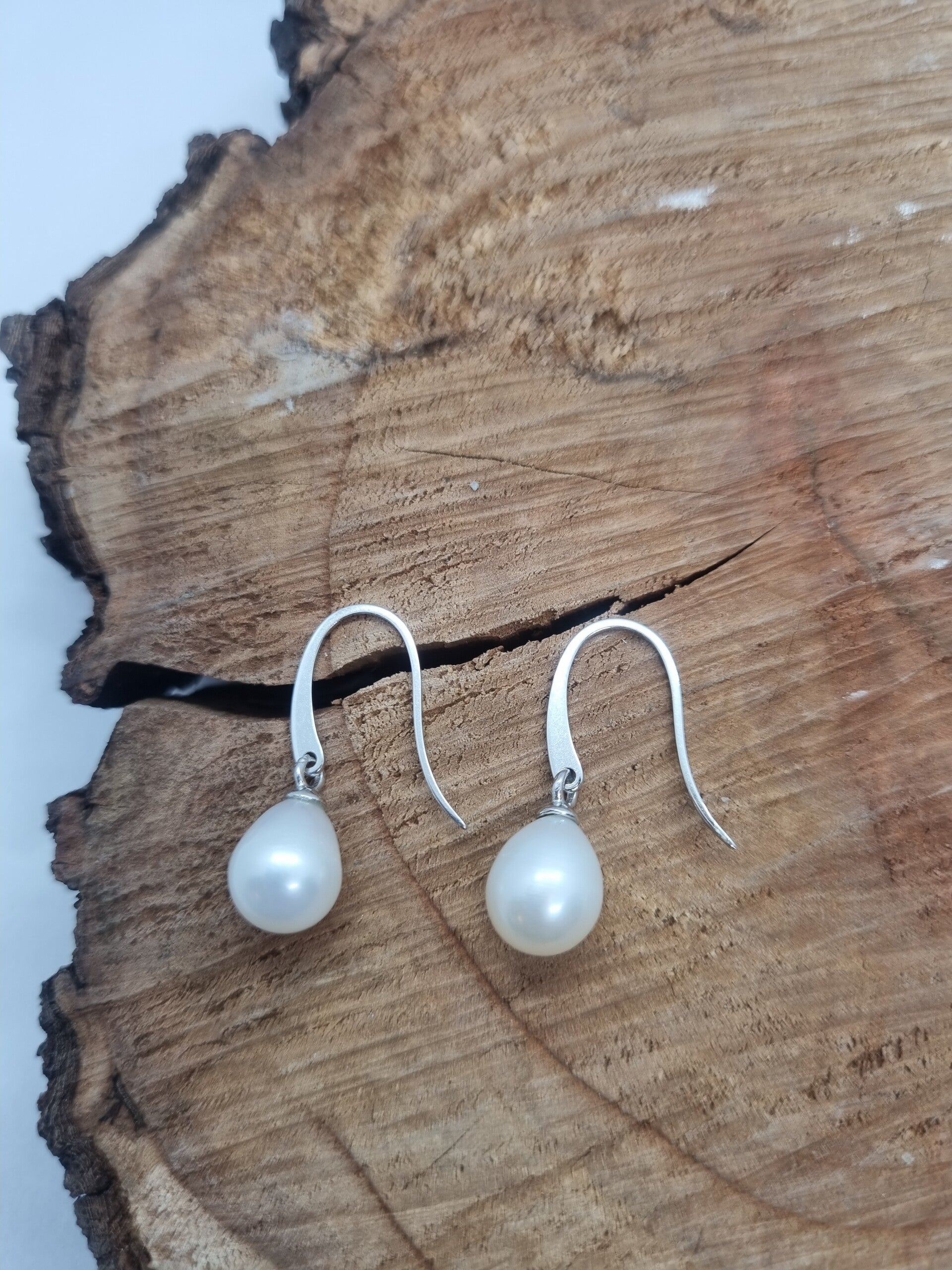 Zilveren oorbellen met parel.